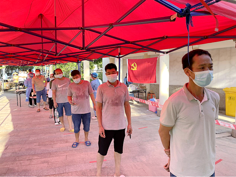 7月11、13日天刚亮,健康基地集团网格员和志愿者已抵达各核酸检测点开始准备工作。党员同志主动靠前,勇担责任,不畏艰难,身体力行坚守在战“疫”一线,组织志愿者驻守在各个检测点,开展登记、扫码、核对员工人数等工作,确保应检尽检,积极配合医务工作者,按照“快、严、实”的工作要求,保障了全园区核酸检测工作的有条不紊、安全高效。