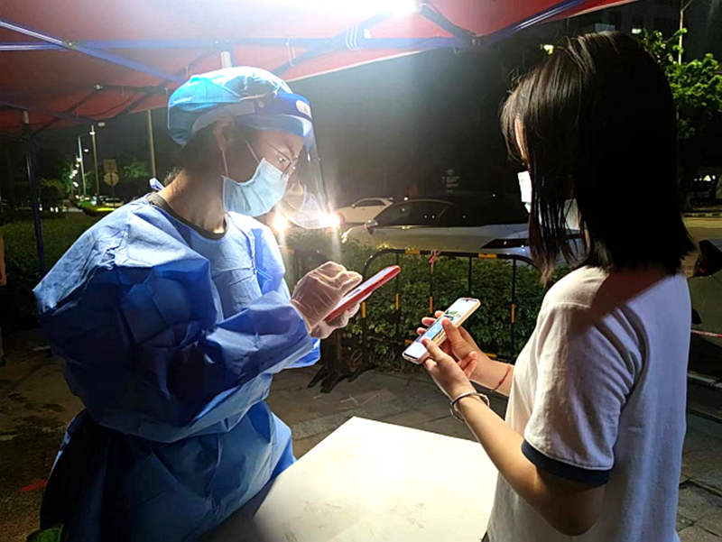 白天骄阳似火、烈日炎炎,一线医务人员、企业志愿者们穿上防护服忍受闷热,克服困难,一丝不苟做好核酸检测工作;晚上披星戴月,舍小家为大家,坚守岗位,齐心协力守护园区。他们忙碌的身影也成为现场最美的风景线。
