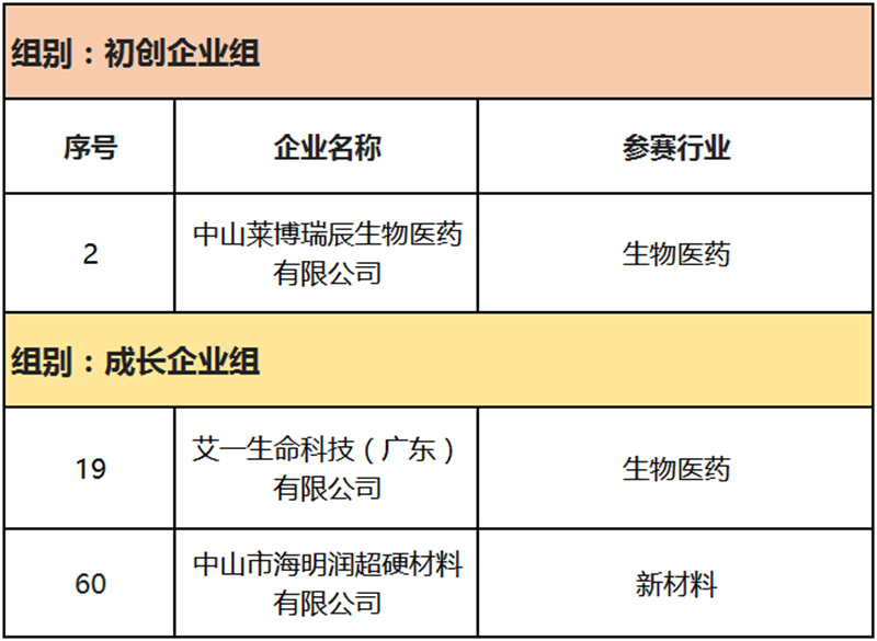 近日,广东省科技金融综合服务中心公告的第十一届中国创新创业大赛(广东赛区)入围全国赛企业名单显示,健康基地园区企业中山莱博瑞辰生物医药有限公司(以下简称“莱博瑞辰”)、艾一生命科技(广东)有限公司(以下简称“艾一生科”)和中山市海明润超硬材料有限公司(以下简称“海明润”)成功入围,占全市30%。