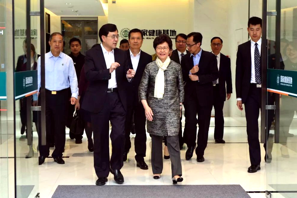 3月29日,香港特区行政长官林郑月娥率团访问中山,首站到访国家健康基地,市委书记、市人大常委会主任陈旭东、市委常委、火炬开发区党工委书记、翠亨新区党工委书记侯奕斌、副市长雷岳龙、市政协副主席李长春以及火炬区管委会主任招鸿陪同考察。