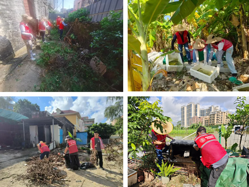 在张家边张三小区、海滨社区东利小区,健康基地社区组化身“环境卫士”,积极配合社区行动,聚焦村内主干道、背街小巷、房前屋后等重点区域,扎实开展以“清垃圾、清积水、清死角”为重点的“三清”行动,同步推进防蚊灭蚊入户宣传与排查工作,有效夯实社区防控基础。此外,根据区基孔肯雅热联防联控指挥部统一部署,健康基地集团迅速组建一支由15名党员组成的“两热”疫情防控突击队,每日派遣5名队员,配合城东社区、张家边社区等开展专业消杀作业,全力支援社区一线防控。