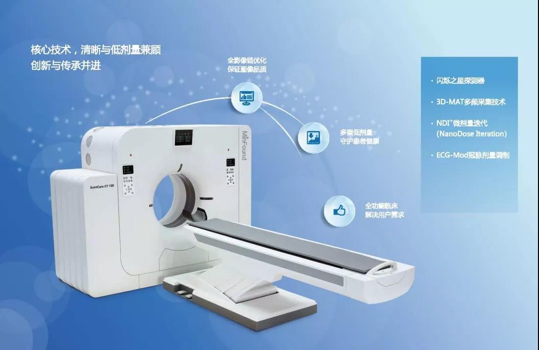 明峰医疗128层CT在心脏扫描应用上采用ECG门控技术和实时的ECG波形分析,可以显著减少心脏扫描的剂量。该设备采用闪烁之星探测器——最新型的集成化探测器技术,在整体架构、材料学设计、集成芯片技术方面均达到国内领先的技术水平;3D-MAT多频采集技术实现了在多倍的空间频率范围内更多数据的采集,使精细解剖结构显示更加真实清晰;NDI+微剂量迭代,将人工智能AI技术融入迭代算法,打造最高端的软硬件平台。