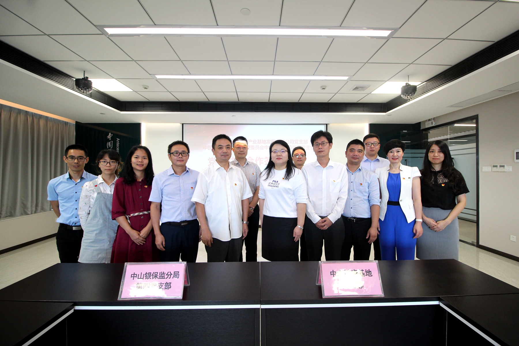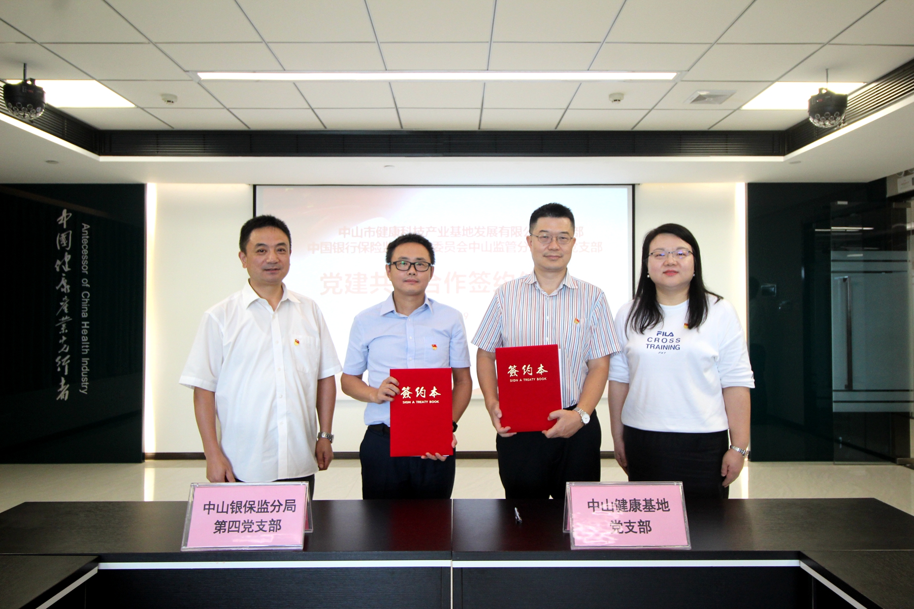 调研交流之后,中山市健康科技产业基地发展有限公司党支部和中国银行保险监督管理委员会中山监管分局第四党支部共同签订党建共建备忘录。本次签约是继2019年4月与中国建设银行中山分行党委共同签订党建共建备忘录后的又一重要合作成果,标志着健康基地高度重视资本对产业的助推作用,并与中山银行业、保险业及其监管部门保持紧密合作,资源共享,优势互补,共同推进党建工作质量迈上新台阶,为健康医药产业发展保驾护航。