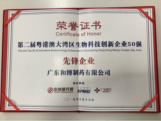 健康基地企业再获粤港澳大湾区生物科技创新企业50强