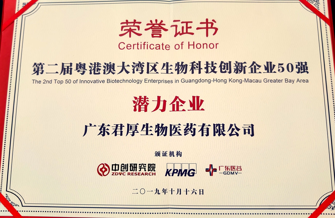 获得“潜力企业”奖项的君厚生物是国内首家具备临床级逆病毒载体GMP工业化生产的CDMO生产服务平台,是国内唯一一家为从事细胞免疫治疗的企业、医院、科研等机构提供CAR-T逆病毒载体的公司,已入选2019中山投资经贸洽谈会41项优质项目、2019年度创客广东大赛五十强等荣誉称号和奖项。