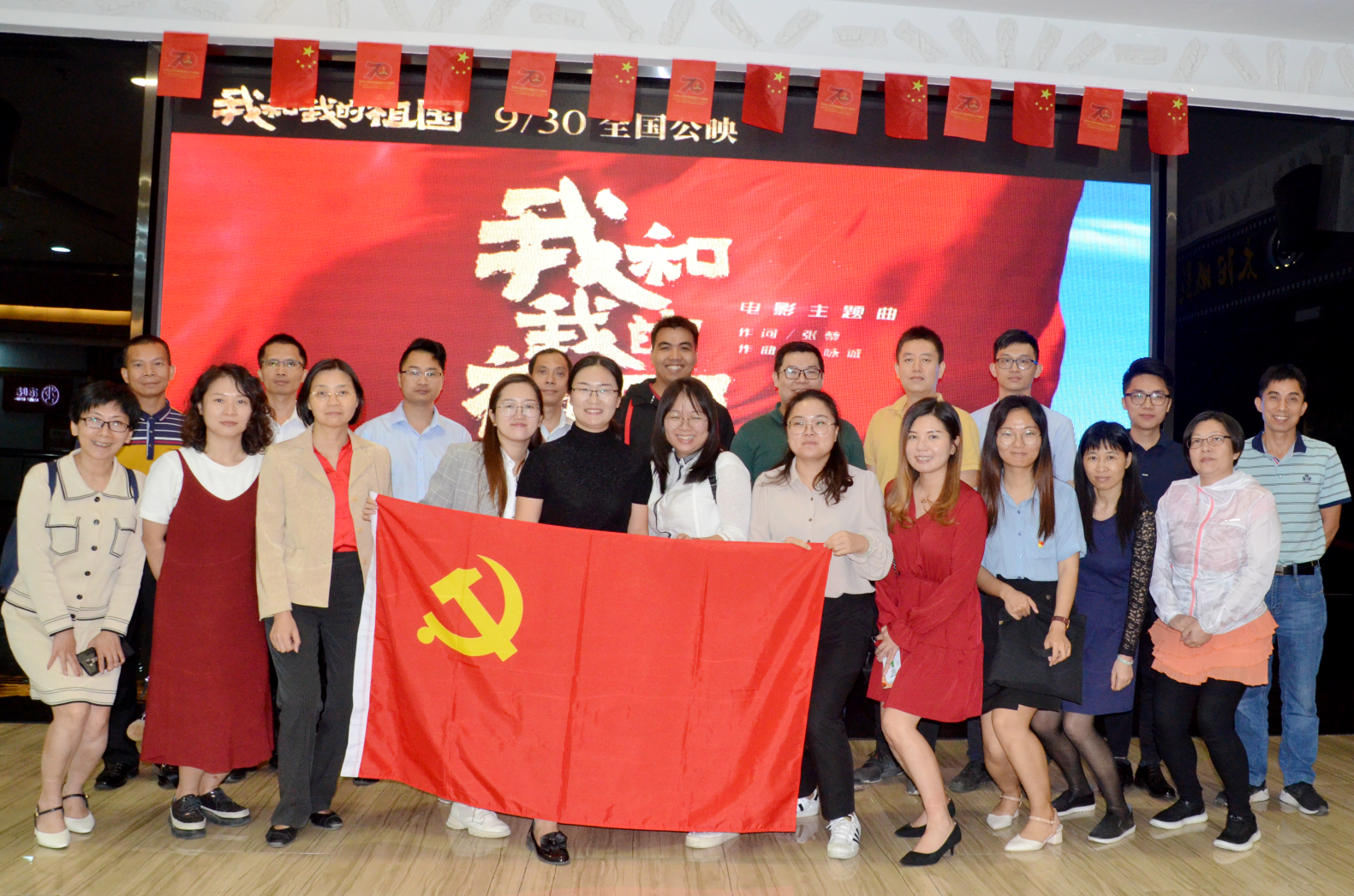 当天下午,健康基地党支部开展了主题党日活动,联合工会组织广大党员干部及职工观看爱国主义教育片《我和我的祖国》, 该影片作为祖国70周年的献礼电影,展现了各行各业平凡与不平凡的奋斗者在不同领域为祖国所做出的贡献,彰显着人民的爱国之情、报国之志。观影后,党员们纷纷表示,在大时代背景下,我们一定坚守“初心”,时刻牢记新时代的“使命”,克服发展中遇到的各种困难,迎接挑战,为中山健康产业的发展做出更加积极的贡献。