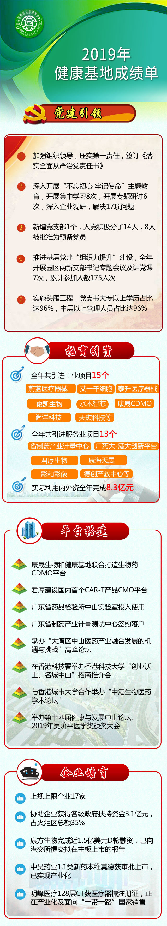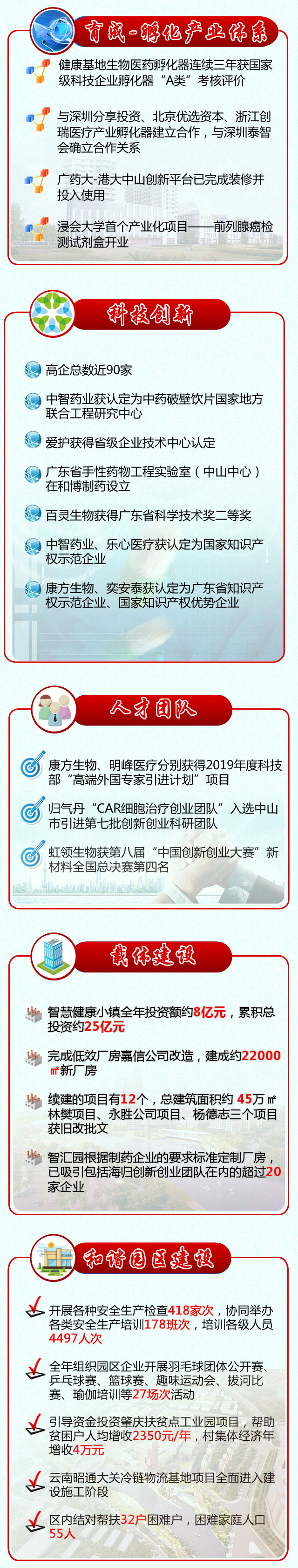 抓住深中通道通车前的窗口期,重点对接深圳外溢产业资源;重点布局新药研发、高端医疗器械、细胞治疗、基因治疗等领域,利用中德(中山)生物医药产业园、广东药科大学-香港大学创新平台、香港浸会大学“创业训练营2020”等平台对接高科技项目在中山转化。深入挖掘一线基金的招商潜力。大力拓展招商载体,扩增工业发展空间。
