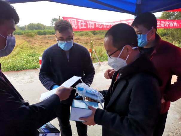 ▲2020年2月3日,火炬区余石贵组长赴团结村检查指导疫情防控工作并向驻村工作队派发防护用具。