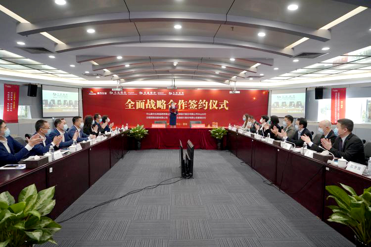 康方生物联合创始人、董事、高级副总裁李百勇、王忠民,联合创始人、副总裁张鹏,首席财务官席晓捷,交通银行中山分行党委书记、行长周土胜,党委委员、副行长曹娟,交银国际副首席执行官苏奋,交银国际(亚洲)公司总经理李宏丽,交通银行香港分行一带一路与大湾区部总经理林永强,副总经理陈智乐等分别参加在中山和香港的签约仪式。