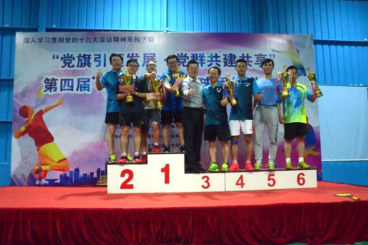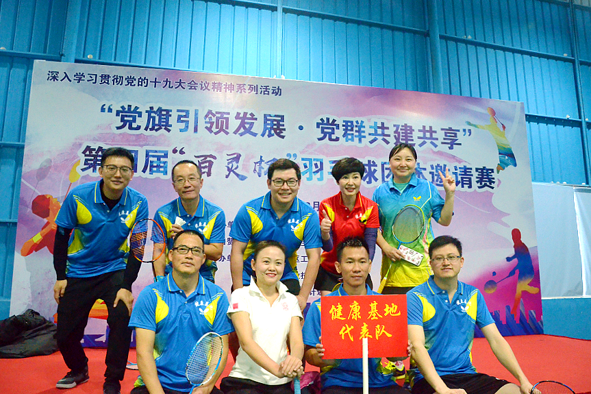为深入学习贯彻落实习近平新时代中国特色社会主义思想和党的十九大精神,加强党的建设,增强基层党组织活力,12月15日,国家健康基地党委在开发区小隐千羽羽毛球馆组织举办了“党旗引领发展·党群共建共享”第四届“百灵杯”羽毛球团体公开赛。本次活动由健康基地党委、中山百灵生物技术有限公司主办,国家健康基地工联会、中山火炬职业技术学院、开发区计生协会协办。健康基地党委副书记吴琰光出席活动。