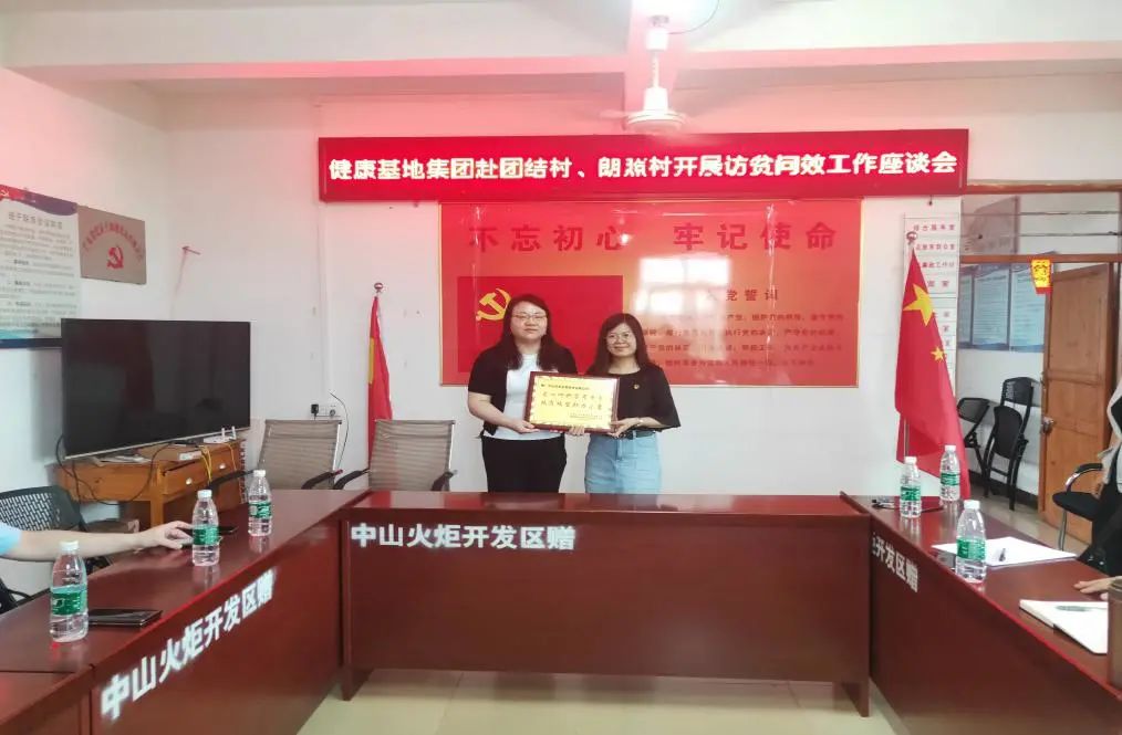座谈会后,健康基地集团党委班子成员及帮扶责任人与火炬区扶贫工作组余石贵组长,到对口帮扶村朗照村调研扶贫产业项目和参观新农村建设成效。