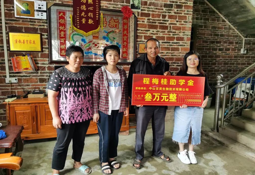 活动中,健康基地集团下属企业百灵生物公司来到结对帮扶的贫困户程石标家中,向程石标的女儿程梅桂送上三年的助学金3万元,帮助其完成学业。