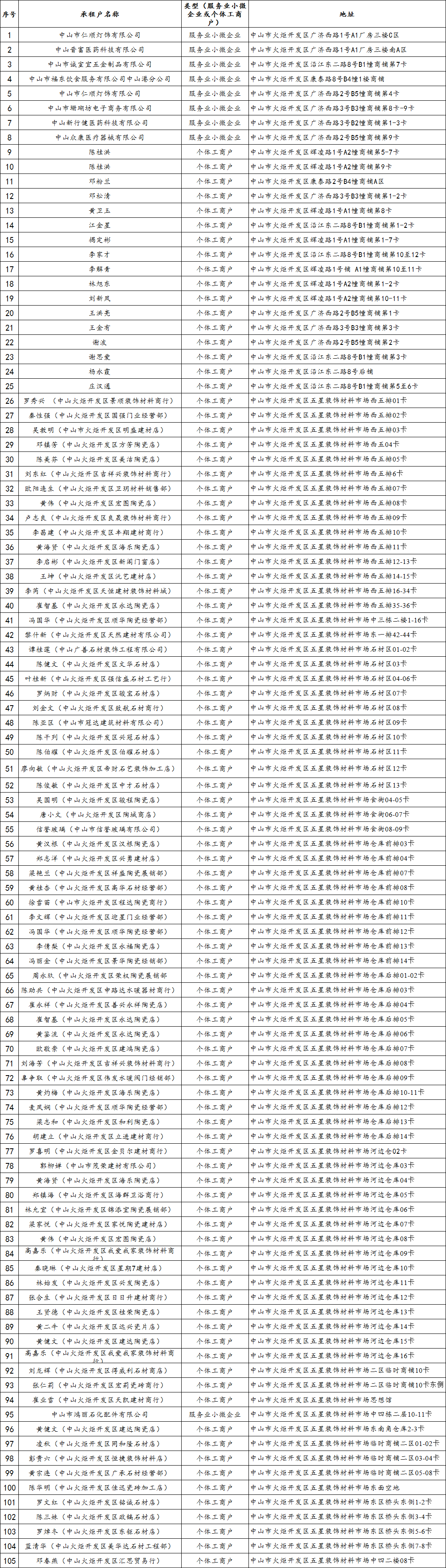 符合减免条件的承租户名单如下(中山市健康基地集团有限公司和中山火炬工业联合有限公司符合条件的下属物业均已包含在内):