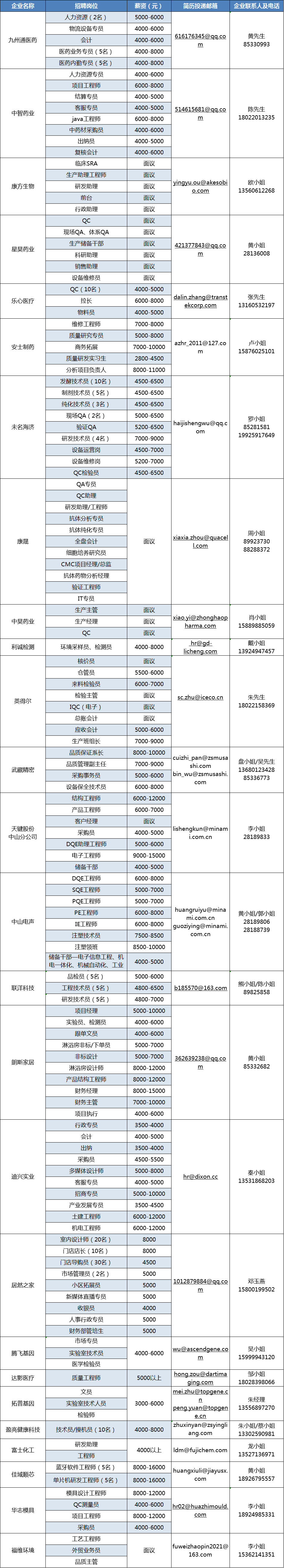 感兴趣的话,请投简历到上述岗位对应邮箱,各企业人力资源人员会与您联系。