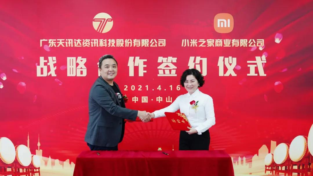 近日,健康基地集团园区企业广东天讯达资讯科技股份有限公司(以下简称“天讯达”)与小米之家商业有限公司(以下简称“小米”)成功签署战略合作签约。火炬开发区党工委委员、管委会副主任黄宇健和中山市健康基地集团有限公司总经理万鹤群见证了签约仪式。