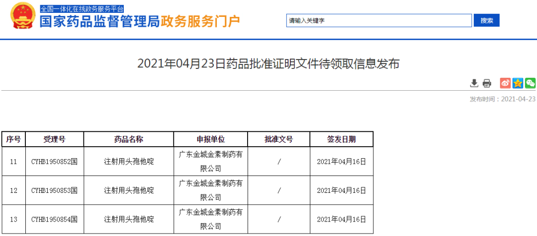 4月23日,NMPA官网显示,健康基地集团园区企业广东金城金素制药有限公司(下称:金城金素)生产的注射用头孢他啶通过一致性评价。注射用头孢他啶为第五批拟集采品种,米内网数据显示,2019年中国公立医疗机构终端头孢他啶销售额超过60亿元。