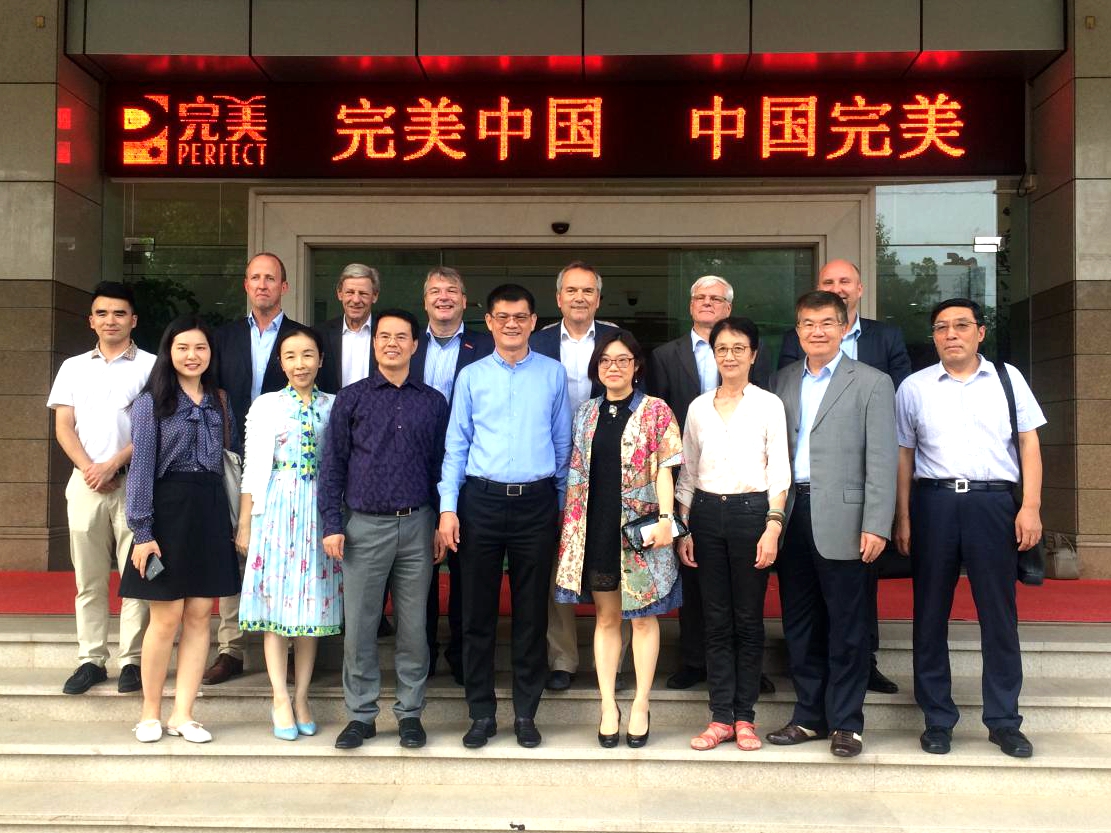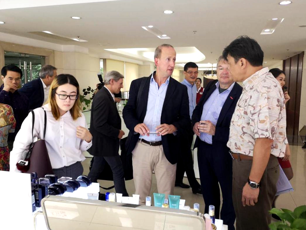 下午,考察团一行来到完美(中国)有限公司总部进行参观,并就新技术合作项目与代表团进行座谈交流。完美公司董事长古润金,总裁胡瑞连等参加了活动。