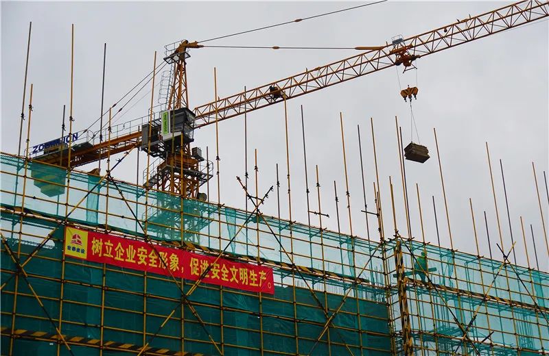 利诚总部项目的工地现场,每天有60多名工人作业,工人们对8月底完成主体工程封顶充满信心。随着夏天到来,天气渐热,为避开中午的高温天气,工地实施每天早上6点开工,中午休息,下午6点钟下班。为确保施工安全,每个星期都会定期召开安全工作会议。