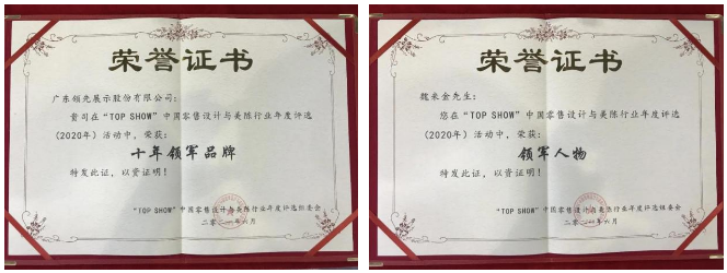 近日,在被誉为“全球智慧零售行业风向标”的第4届厦门国际智慧零售产业博览会上举办的“TOP SHOW中国零售设计与美陈行业年度评选(2020年)”颁奖活动上,健康基地集团园区企业广东领先展示股份有限公司(以下简称“领先展示”)入选“十年领军品牌”,公司董事长魏来金入选“领军人物”。