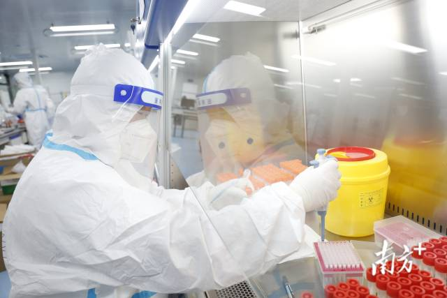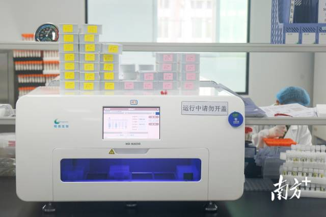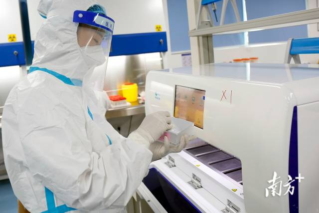 从1号盒子到6号盒子,大约需要75分钟。为了进一步辨别“纯化RNA”是否属于新冠肺炎病毒,样本还要被人工转移至PCR仪器进行检测,最终得到检测报告。这个过程下来,整个检测最快需要3小时。连日来,中山市核酸城市检测基地负责人齐增恒与近500名同事,通宵达旦地检测核酸样本。