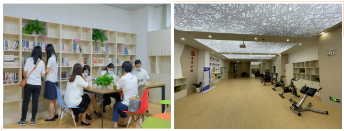 健康基地园区党委以政治功能更突出、服务功能更齐全、综合性质更全面、党的元素更鲜明为建设目的,着力把党群服务中心打造成教育和服务党员的“红色家园”、服务群众的“亲民平台”,实现共建共治共享。通过紧密结合群众需求,充分整合政协、工会、团委、妇女、志愿服务、税务、人社、法律等各部门资源,设置了多功能会议室、多功能活动室与儿童空间、“同心园”党群服务室、劳资纠纷调解室、便民服务活动室及心理咨询室等便民阵地,建立了一系列党史学习、党员先锋、劳动模范等系列展区,体现出“党员群众同心,共治共建家园”理念,实现服务、管理、资源的高效集聚,确保园区基层组织运行、党员教育培训、服务群众办事等方面有序推进。