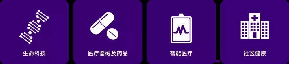 医疗器械及药品 — 高性能材料、第二等级医疗器材、第三等级医疗器材、生物制剂、其他智能设备、机械人与新兴技术、诊断。