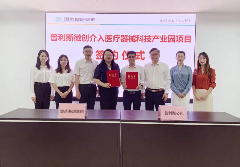 8月25日,普利斯微创介入医疗器械科技产业项目落户火炬开发区签约仪式在健康基地举办,火炬区中山港街道党工委副书记徐世平,火炬区招商办副主任、民众街道办事处副主任黄姝妍,中山市健康基地集团有限公司总经理万鹤群、副总经理余从洪,中山市普利斯微创介入医械有限公司(以下简称“普利斯公司”)董事长韦刘东出席了活动。