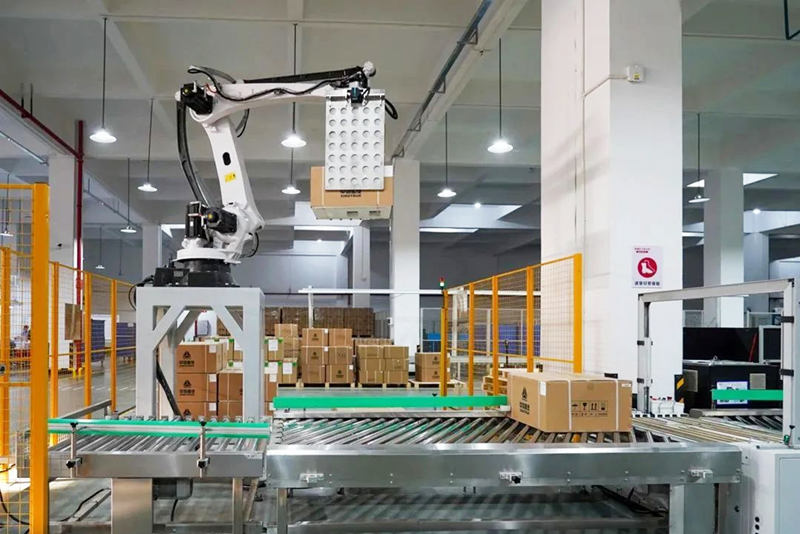 巨大的机械臂将成品整齐堆放入库。记者冯明旻摄