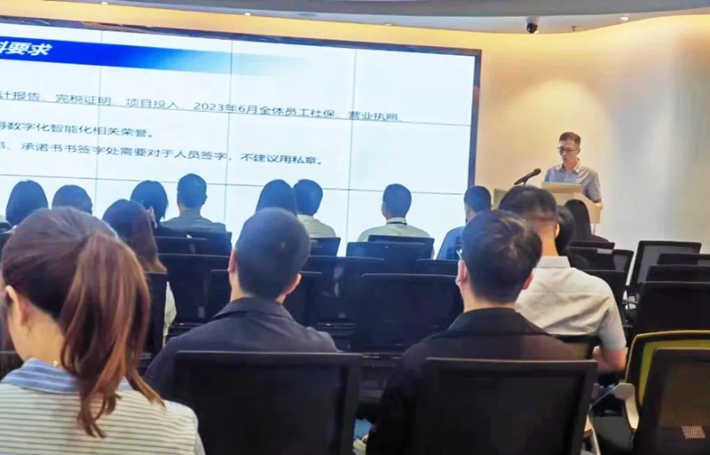 火炬开发区经科局对《中山市推进制造业数字化智能化转型发展若干政策措施》、《中山市制造业企业数字化智能化标杆示范认定与奖励实施细则》和2023年制造业企业数字化智能化标杆示范认定的申报要求作了细致讲解,介绍了政策背景及目标、标杆示范认定与资助、申报程序及要求、认定申报相关要求等,并鼓励园区企业积极参与数字化智能化标杆项目申报。希望通过政策引导,企业能进一步加大数字化投入,共同推动火炬开发区制造业数字化智能化转型,助力区域经济高质量发展。