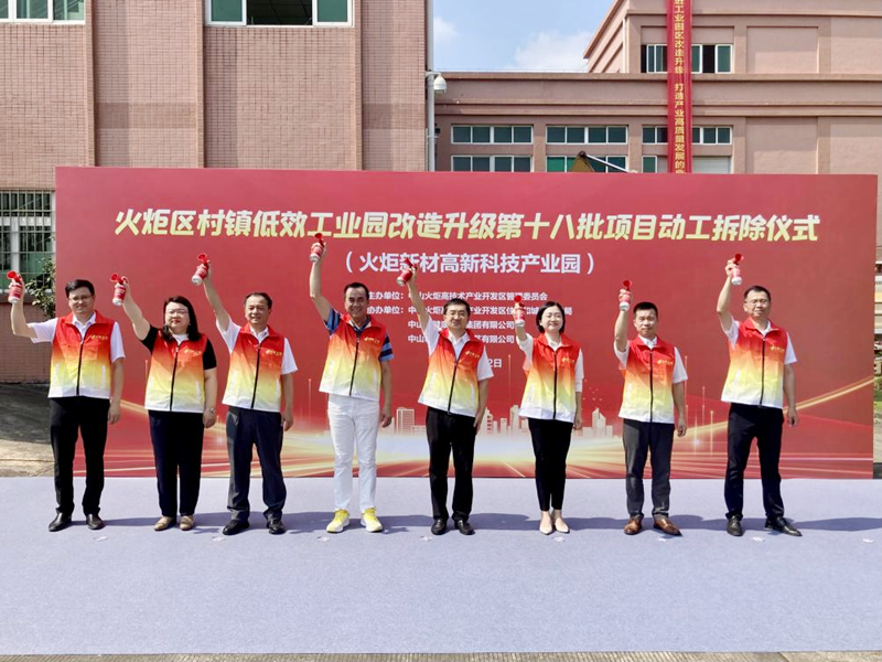 6月2日,火炬开发区举行村镇低效工业园改造升级第十八批项目动工拆除仪式,健康基地园区项目火炬新材高新科技产业园项目正式动工拆除。