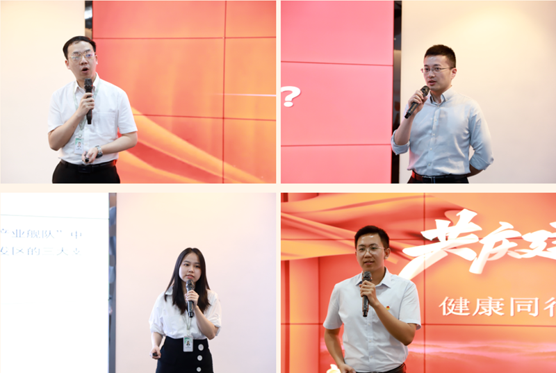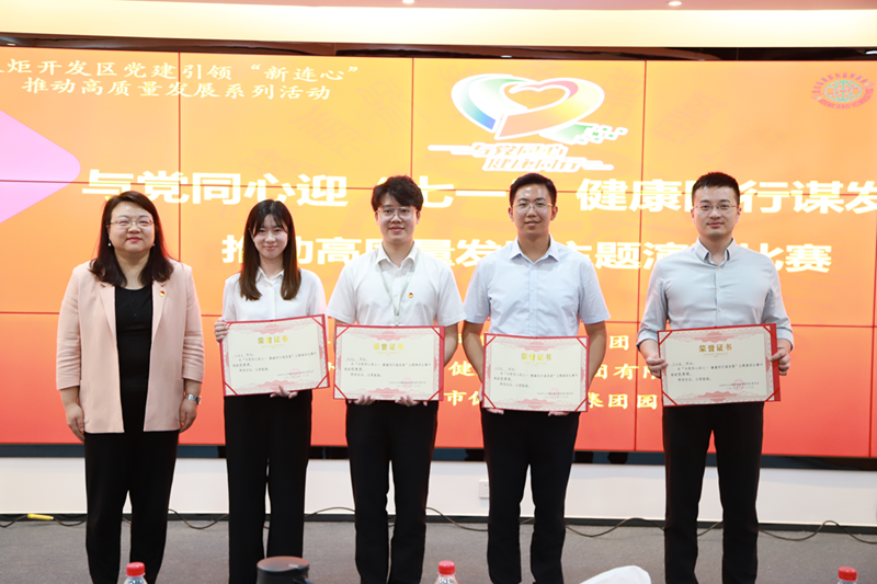 为深入贯彻党的二十大精神,以实际行动迎接建党102周年,激励集团全体党员干部职工进一步统一思想、凝心聚力、对标赶超,奋力开创集团高质量发展新局面,健康基地集团园区党委于6月27日举办“与党同心迎‘七一’ 健康同行谋发展”推动高质量发展主题演讲比赛。火炬开发区组织人事办副主任王少凯、火炬开发区党群服务中心主任李慧、中山港街道团工委副书记邱学松、健康基地集团园区党委书记、总经理万鹤群等集团领导班子参加此次活动。