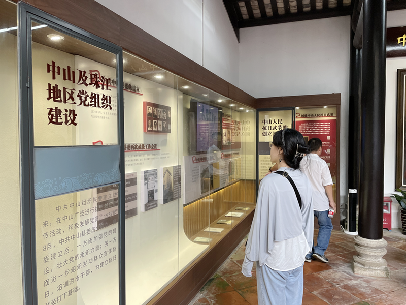 在南桥村槟榔山14号古氏宗祠,党员们透过历史照片和文字资料,深入了解了中国共产党领导的珠江纵队的前身、发展历程、人物历史和主要贡献,实地感受中山的革命先辈正确执行党的方针政策,坚持统一战线,依靠人民群众,灵活运用游击战争的战略战术,为民族解放事业作出重要贡献的奋斗历程和红色故事。
