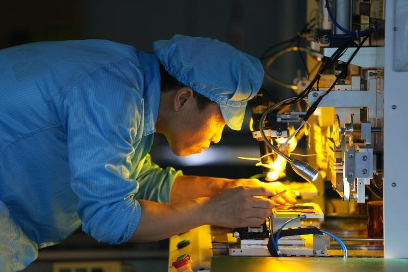图:血压计是乐心医疗的主打产品,工人们正在进行装配。