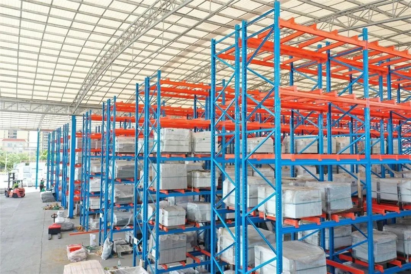 走进仓库,只见3万平方米的仓库有序堆满了各种大大小小的立体货架组装原件。