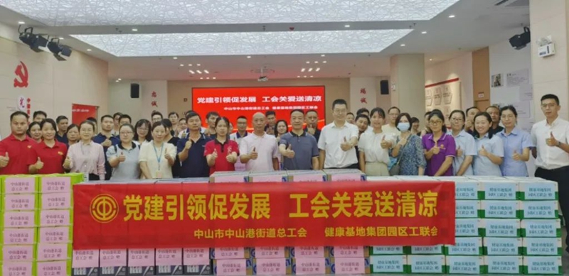 入伏以来,我市高温天气持续,给高温作业一线职工带来严峻的“烤”验。为深入学习贯彻党的二十大精神及习近平总书记关于工人阶级和工会工作的重要论述精神,进一步做好高温天气下工会劳动保护工作,切实维护广大职工在盛夏高温季节的安全健康权益,7月27日,中山港街道总工会走进健康基地集团园区开展“职工健康行・工会送清凉”活动,为高温作业一线职工送去一丝清凉,解除一分暑热,传递一份关爱。中山港街道总工会专职副主席考振柱、二级主任科员何健中、健康基地集团园区党委副书记、工联会主席吴琰光以及园区近50家企业工会代表参加活动。