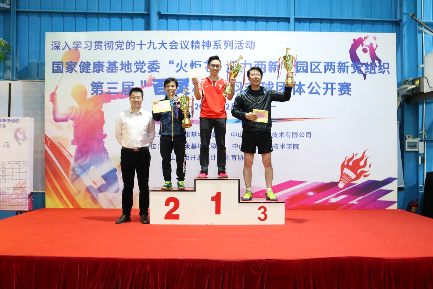 为深入学习贯彻落实党的十九大会议精神,12月16日,国家健康基地党委在开发区小隐千羽羽毛球馆组织举办了“火炬芯·活力两新”园区两新党组织第三届“百灵杯”羽毛球团体公开赛。本次活动由健康基地党委、中山百灵生物技术有限公司主办,国家健康基地工联会、中山火炬职业技术学院、开发区计生协会协办。健康基地党委书记方迎、副书记吴琰光出席活动。