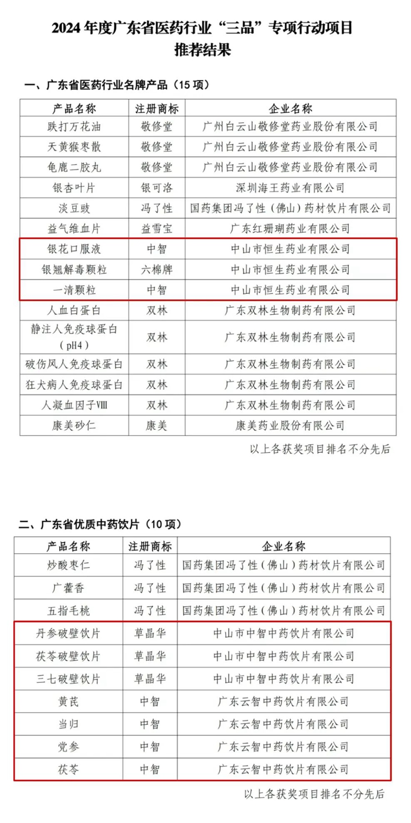 近日,在 2024 年度广东省医药行业协会科学技术奖和 “三品” 专项行动项目评价中,健康基地园区企业中智药业集团10个产品榜上有名。