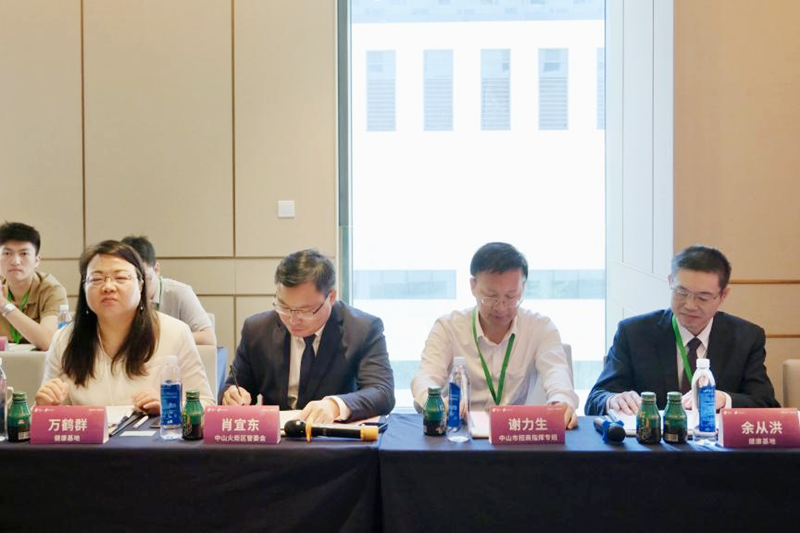 中山火炬高新区党工委委员、管委会副主任肖宜东,中山市人大常委会预算工委二级调研员、市招商指挥部长三角工作组副组长谢力生,健康基地集团总经理万鹤群、副总经理余从洪与嘉宾围坐交流,针对双方的合作关切逐一回应,并提出了创新的合作模式和实现路径。同时,投融资机构代表不仅在现场积极与项目方互动,会后也纷纷表示将把这些利好消息精准传达给各自在投的项目和企业。