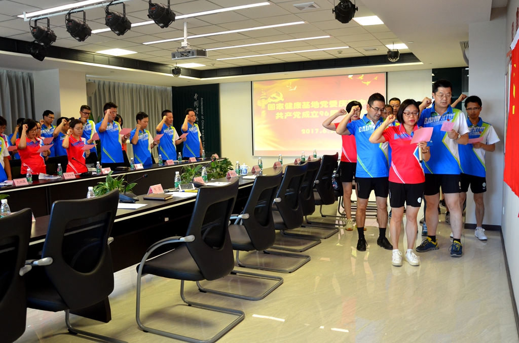 6月30日,国家健康基地全体党员、团员、中层以上管理干部以及园区企业两新团支书等60多人聚合在一起,开展了系列党建活动,以庆祝中国共产党建党96周年。