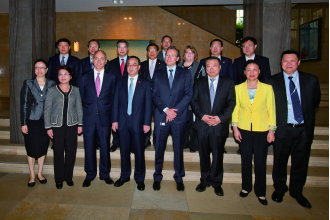 2013年7月,广东省委书记胡春华带队访问山德士制药母公司-瑞士诺华公司总部。