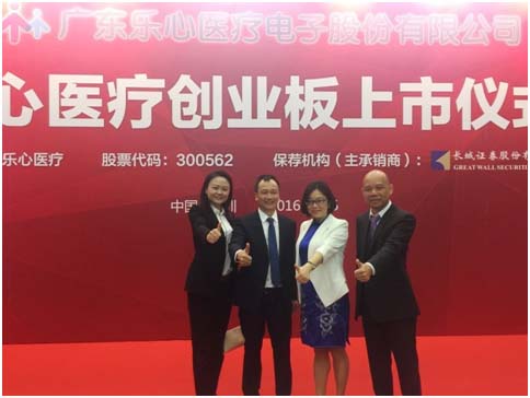 11月16日,广东乐心医疗电子股份有限公司(下称:乐心医疗,证券代码:300562)在深圳证券交易所创业板正式挂牌上市。中山市副市长吴月霞、火炬区管委会主任招鸿、火炬区党工委副书记林细权、国家健康基地总经理方迎出席上市仪式。