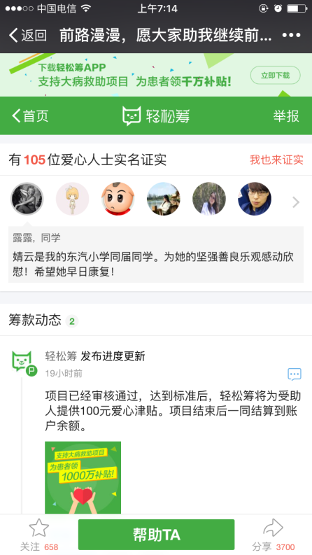 6月27日下午2:00,第一个人转发朋友圈后,健康基地的小伙伴开始自发陆续的转发,在转发的同时不断呼吁社会能够帮帮她。