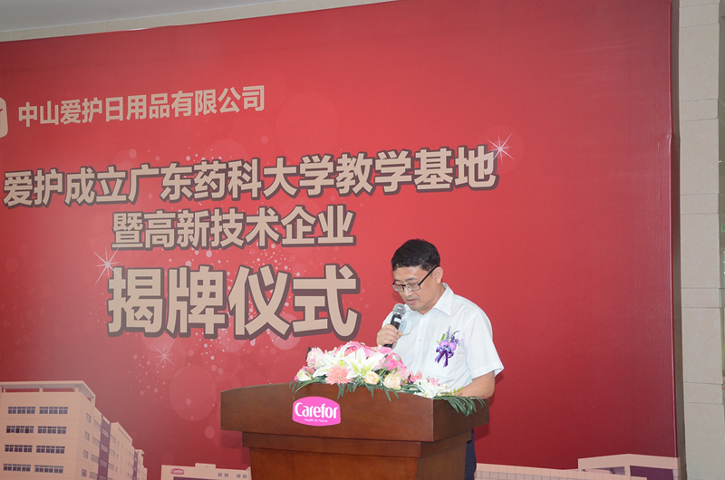 6月28日,爱护公司“广东药科大学教学基地暨高新技术企业成立”揭牌仪式在健康基地园区爱护厂房举行。火炬开发区管委会主任招鸿、市科技局局长尹明、副局长林俊、市食品药品监督管理局局长梁卫华、健康基地总经理方迎、广东药科大学医药化工学院院长申东升等参加会议。