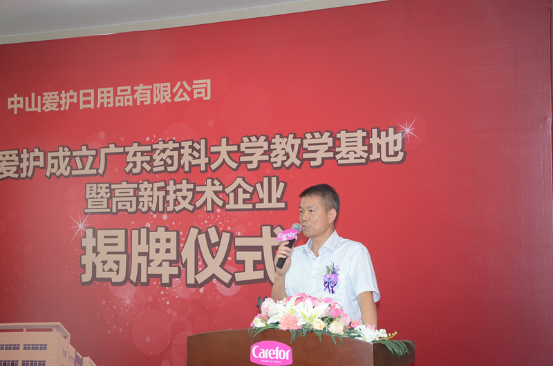 爱护公司总经理邹文生在致辞中表示:本次揭牌仪式是对爱护十三年专注婴童洗护研发成果的肯定。在政府的大力支持和关怀下,爱护及“爱护婴童健康科技研究院”也将携手广药科研人才,深化企校合作,努力将爱护打造成为“高科技含量的婴童皮肤健康基地”,始终坚持医药级严苛的生产标准,不忘初心,守护婴童健康未来。