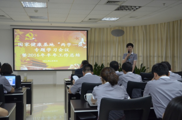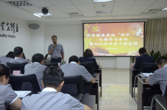 “要深入学习中国特色社会主义理论体系;要全面学习做好本职工作必需的知识;学习的目的在于运用,学习的成效在于解决实际问题”,6月20日,健康基地党总支书记、总经理方迎以“领导干部要认认真真学习”为主题,结合上述三个学习内容及健康基地上半年工作总结,开展了健康基地“两学一做”系列活动的第二讲。