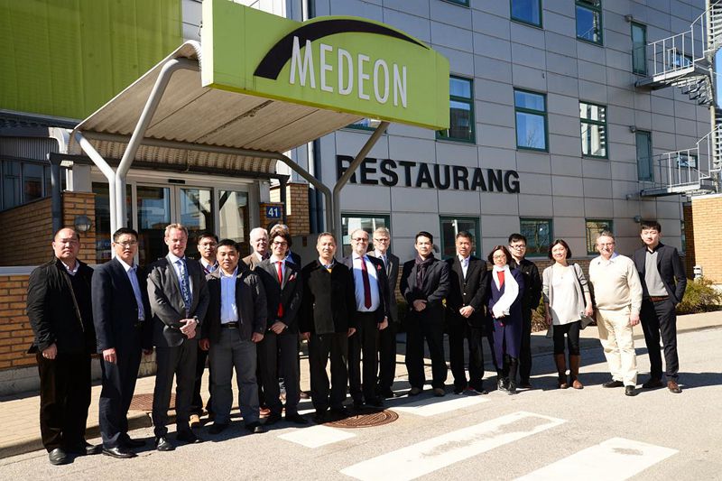 Medeon科学园总经理Ulf G Andersson热情接待了中山代表团一行。Ulf G Andersson首先向代表团详细介绍了科学园整体情况和优势特色,侯奕斌常委用英文介绍了中山经济社会发展情况,并特别推介了中山健康产业发展的基础和优势。Andersson表示希望加强科学园与中山市以及国家健康基地的交流,相互学习,促进合作。