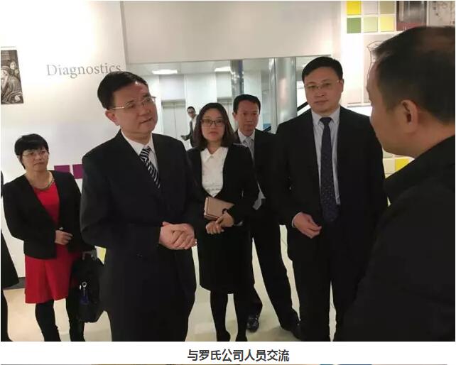 瑞士当地时间11月18日下午,中山市委书记薛晓峰率领中山市代表团前往瑞士巴塞尔罗氏集团考察,罗氏集团政府事务负责人Mrs.Nathalie Stieger等热情接待了代表团一行。市委办公室主任黄伟东、翠亨新区管委会主任贺晖、市商务局局长欧阳锦全、市外事侨务局局长冯金怡、火炬开发区党工委副书记、管委会副主任孙宇红、健康基地总经理方迎等随同考察。