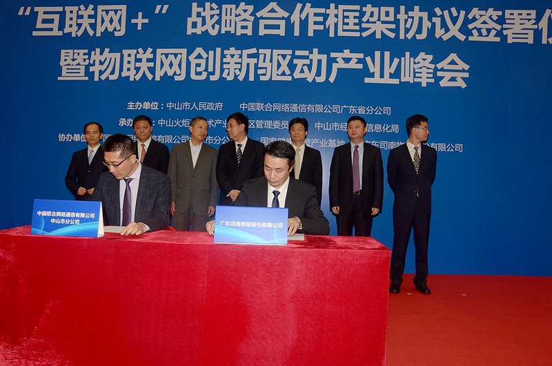 本次峰会上,中山市政府与中国联通中山分公司签署了“建设智能产品云服务产业基地合作框架协议”,火炬区管委会与司南物联网签署了“建设中山智能产品公共服务平台的战略合作框架协议”,司南物联网同时与中国联通中山市分公司签署了长期战略合作框架协议。各方协作将致力于为中山传统企业搭建物联网化升级改造的综合性服务平台。