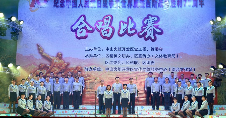 9月22日,由中山火炬开发区党工委、管委会主办的纪念中国人民抗日战争暨世界反法西斯战争胜利70周年合唱比赛(企业组)拉开帷幕。健康基地全体员工积极参赛,并斩获银奖。