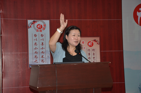 叶老师向女员工提出了美满幸福六字诀:成功、健康、自在,并从构建孩子幸福感的八种方法、了解并发挥孩子的优势方法、促进孩子幸福的美德育成方法三方面介绍幸福孩子的培育方法。
